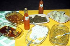with rice, sweet potatoes, yams, saka-saka,